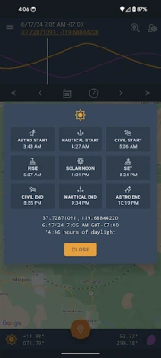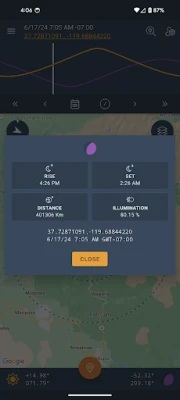 Immagina di poter prevedere con assoluta precisione ogni danza celeste: l'istante esatto in cui il sole bacia l'orizzonte all'alba o si ritira al tramonto, o quando la luna sorge maestosa e cala discreta. Questa applicazione trasforma tale visione in realtà, offrendo un controllo ineguagliabile sui movimenti celesti. Traccia in tempo reale la posizione del Sole e della Luna, scopri i loro azimut ed elevazioni a qualsiasi ora e pianifica ogni momento cruciale con dati accurati su alba, tramonto, sorgere e calare della luna, inclusa l'ora solare e la distanza lunare.