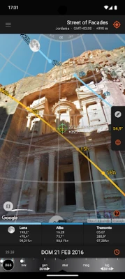 Immergiti in una dimensione di pianificazione avanzata grazie alla Realtà Aumentata (AR), che proietta una vista sferica a 360 gradi direttamente sulla tua fotocamera, mostrandoti la posizione esatta degli astri nel cielo o come interagiranno con l'ambiente circostante. La Vista Mappa, alimentata da Google Maps con rilievi e controlli di inclinazione e rotazione, ti permette di posizionare il punto di ripresa e allineare lo scatto con gli eventi celesti, calcolando anche altitudini e angoli verticali tra due posizioni. Per le meraviglie notturne, l'applicazione offre strumenti dedicati alla Via Lattea e alle scie stellari, visualizzando il centro galattico e fornendo una bussola celeste per preparare scatti indimenticabili sotto un cielo stellato.