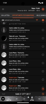 La precisione è garantita da funzionalità come la Bussola 3D, che sovrappone le posizioni di Sole e Luna e i relativi eventi sull'orientamento reale del dispositivo. Un "Cursore Macchina del Tempo" ti consente di esplorare gli eventi celesti giorno per giorno o di osservare l'evoluzione annuale della durata del giorno e del percorso lunare. Per i pianificatori più esigenti, lo strumento di Ricerca di Posizione permette di individuare la posizione ottimale del Sole, della Luna e del centro della Via Lattea, con vincoli personalizzabili. È anche possibile importare ed esportare segnaposti .kmz/.kml di Google Earth per una condivisione e un backup agevoli. Inoltre, l'applicazione funziona offline (ad eccezione della Vista Mappa), assicurandoti la possibilità di salvare e caricare località senza dipendere da una connessione dati o segnale GPS.
