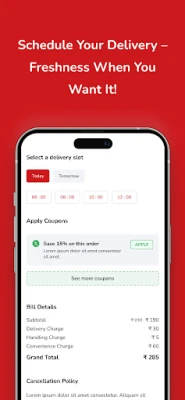 L'esperienza Zappfresh è progettata per offrirti massima comodità e tranquillità. Esplora rapidamente la nostra gamma completa di prodotti: dalla carne cruda ai tagli freddi, dalle marinate pronte ai piatti pronti da gustare. Preordina con facilità, scegliendo la fascia oraria e il luogo di consegna che preferisci, con la flessibilità di pagare in anticipo o in contanti alla consegna. La nostra esclusiva tecnologia di "valutazione della freschezza" ti permette di tracciare il percorso del tuo ordine dalla fattoria alla tua tavola. Garantiamo la consegna in giornata o programmata secondo le tue esigenze, a Gurgaon e in tutta l'area di Delhi/NCR. Con Zappfresh, non ci sono compromessi: solo il sapore inconfondibile di carne succulenta, deliziosa e nutriente, proprio come natura l'ha creata.